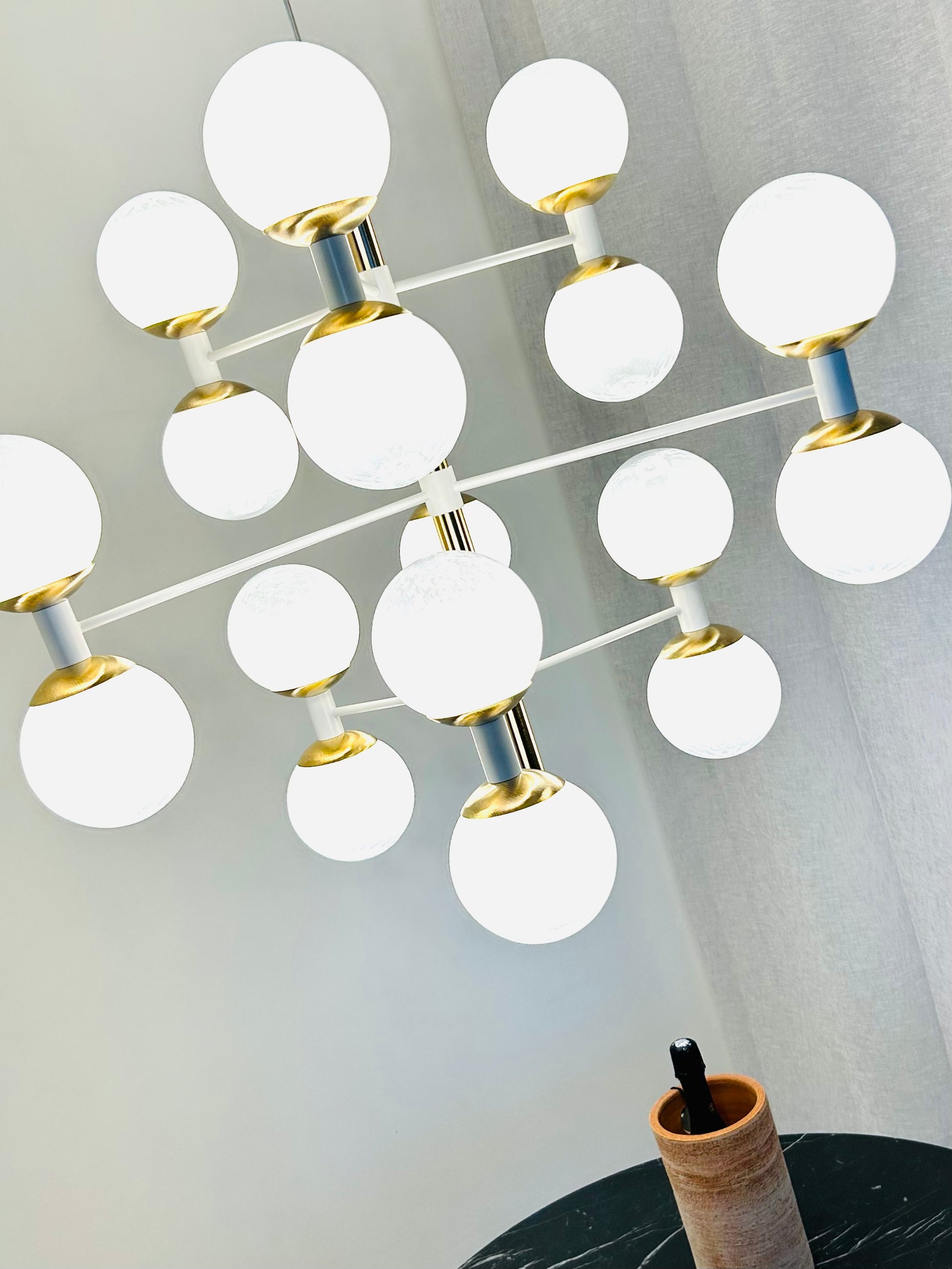 Perfetta per un salotto raffinato o una sala da pranzo contemporanea, la lampada a sospensione Molecole è più di una semplice illuminazione: è un elemento di design che esalta l’atmosfera della tua casa.